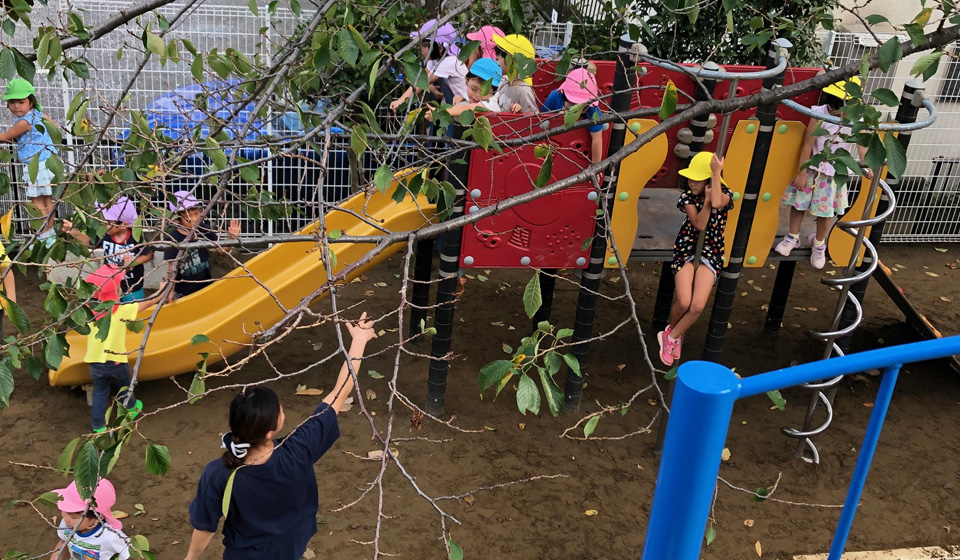 幼児の生活はすべてが遊びです。遊びのなかから好奇心や試み、自主性、創造性、社会性が生まれます。遊びを励まし、自ら遊びを生みだす子どもとして教育がしたいのです。